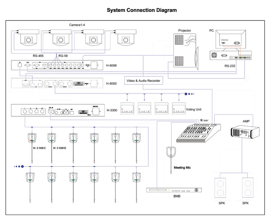 • Support discuss, video camera auto-track (with video processor H-8008) & voting (with voting processor H-8000)