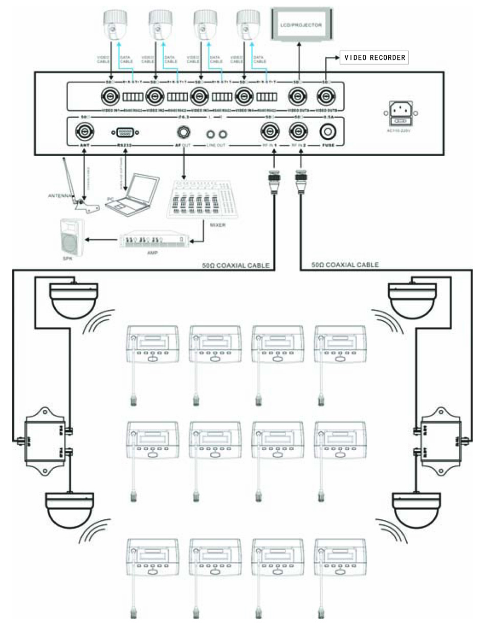◆ Fully functions(Discuss, video tracking & voting), support FIFO(1,2,3),Limit(1/2/3) and chairman only mode, microphones in one system up to 128 units