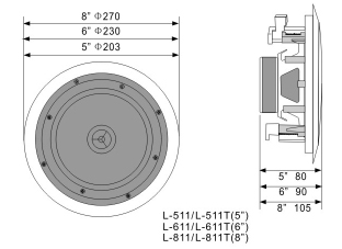 Dimension (mm):  Φ203x80  Φ230x90  Φ270x105