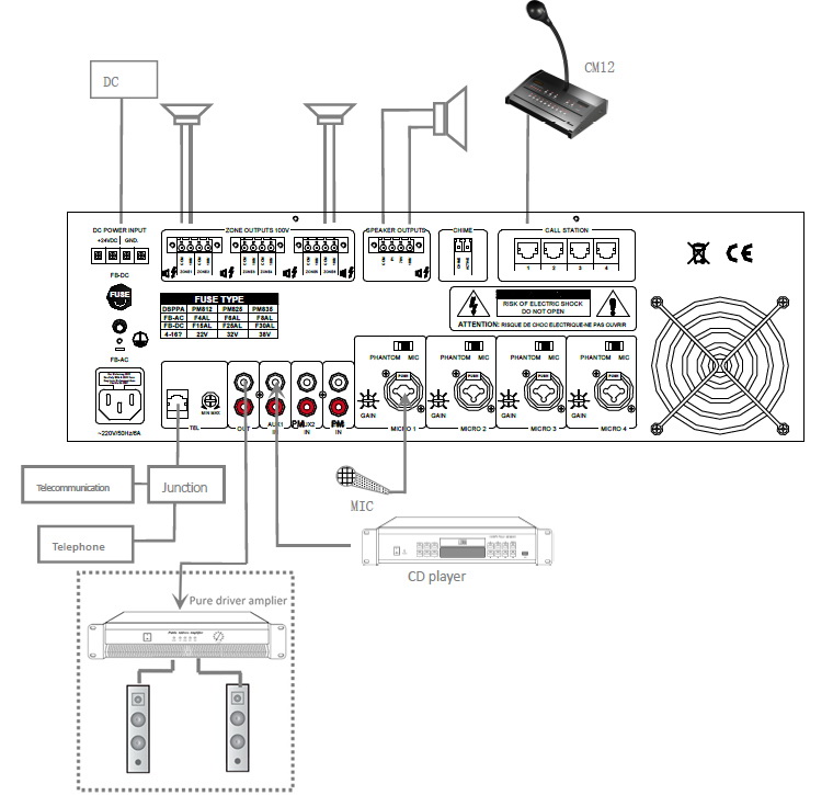 ◆ 4 remote paging microphone interface (should work together with our CM12 remote paging microphone)